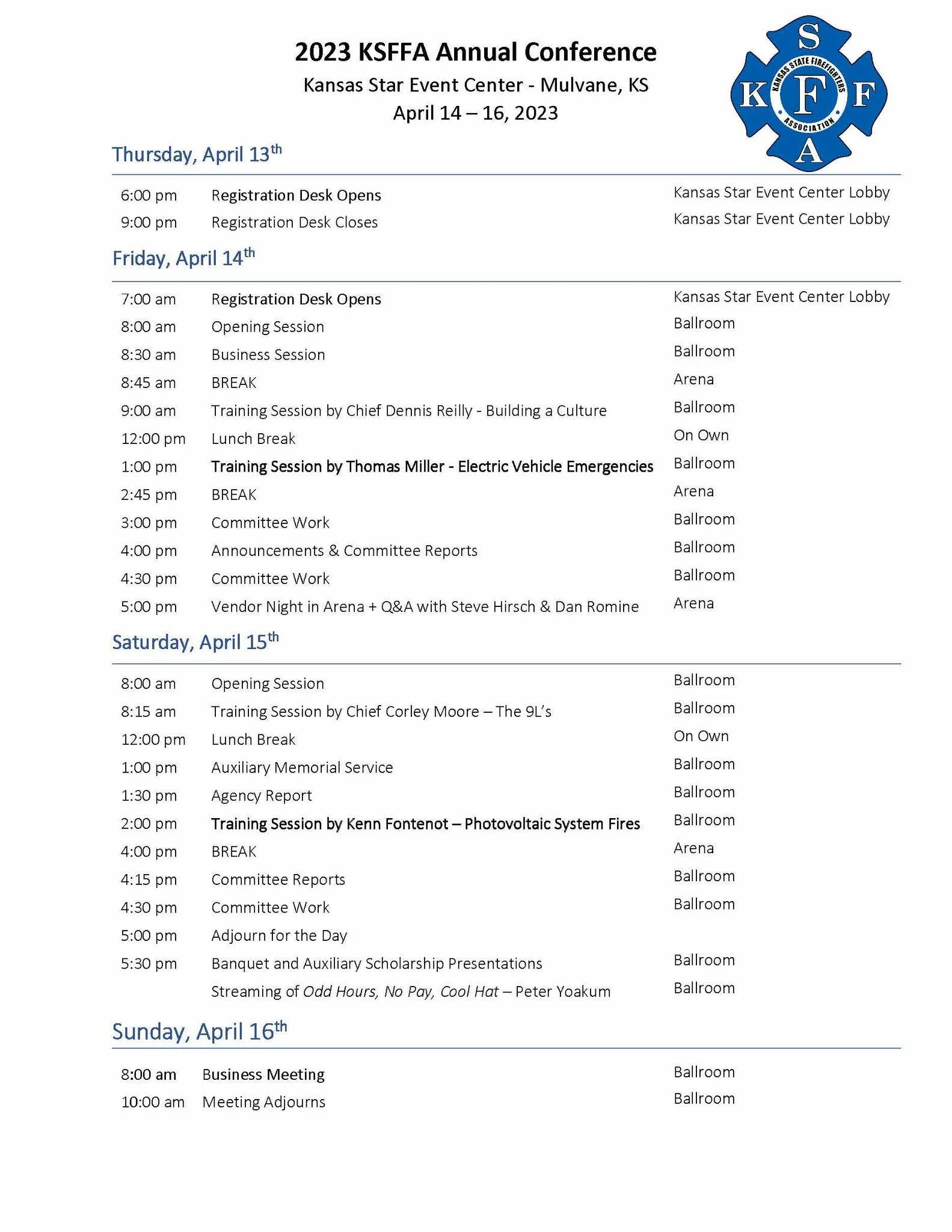 The 2023 KSFFA Annual Conference will be held on April 14th - 16th at the Kansas Star Casino in Mulvane, Kansas.